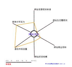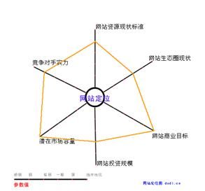 從這個簡單的分析不難發現,福州印秀定位于提高企業建站水平和維護網站生態圈良性健康的發展,畫一個網站定位六維簡圖,便可清晰直觀地思考我們的網站定位。