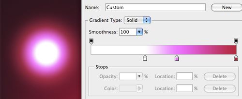 下面要制作一個光效層,并且將會用它來制作所有的光波。新建圖層設置混合模式為濾色。然后用橢圓選區工具選擇一個圓形選區,然后設置20px將選區羽化(選擇》修改》羽化)(Ctrl+Alt+D)。這樣會讓光效邊緣更像光暈。我喜歡用三種顏色來做漸變。第一個也是最里面應該選擇白色或者接近白色的顏色。填充的時候確保從選區中心開始到選區邊緣結束。